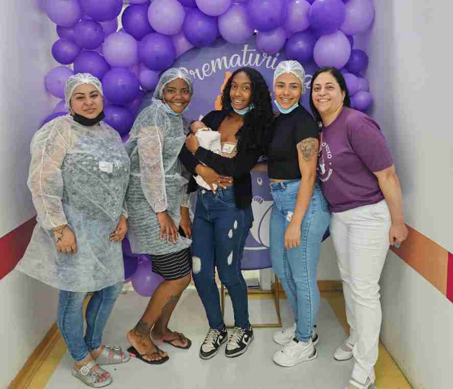 A equipe da Unidade Neonatal da Santa Casa de Misericórdia de Mogi das Cruzes teve um motivo extra para festejar neste ano o Dia Mundial da Prematuridade, celebrado em 17 de novembro: a impressionante recuperação de Helena. Ela nasceu extremamente prematura e com desconforto respiratório grave, em 12 de julho, com idade gestacional de 26 semanas 6/7 e 860 gramas. Recebeu alta médica nesta terça-feira (25/11), com 2.440 gramas, alimentação oral normal e sem necessidade de suporte respiratório, como descreve a enfermeira Sandra Aparecida da Silva Soares, coordenadora do setor.