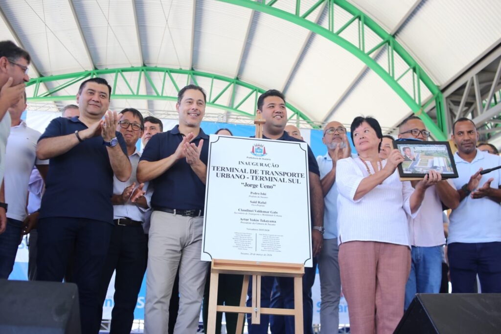 A Prefeitura de Suzano inaugurou neste sábado (28) o Terminal de Palmeiras, ou Transporte Urbano – Terminal Sul “Jorge Ueno”. O projeto, que leva as assinaturas do ex-prefeito Rodrigo Ashiuchi e do atual prefeito Pedro Ishi, é celebrado como uma maiores entregas voltadas à região sul da cidade.